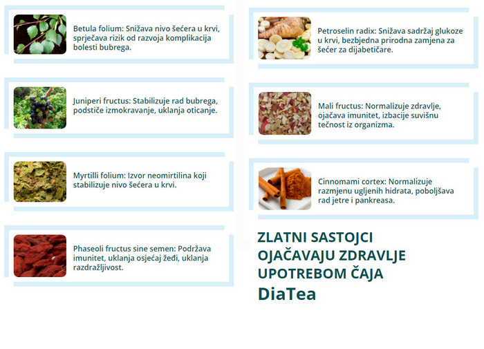 Vodeći znanstvenici najvećih istraživačkih laboratorija smislili su Diatea za dijabetes melitus. Tijekom dugogodišnjih pokusa uspjeli su stvoriti jedinstvenu formulu na bazi prirodnih biljnih sastojaka. Prirodni sastav ima nevjerojatna ljekovita svojstva i ima složen učinak na tijelo pacijenta sa dijabetes melitusom: